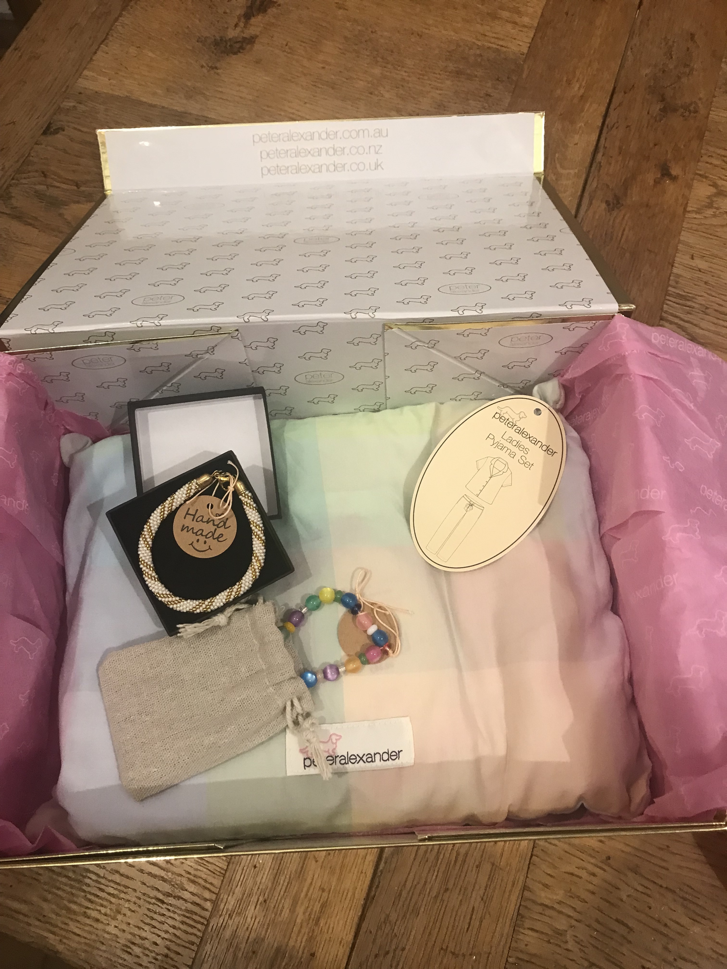 ![]() Hand-crafted Bracelet & Phone Charm Set 💖Lovingly made, this delightful set pairs a beautiful bracelet with a phone charm, crafted with care and attention to detail. Whether you wear the bracelet on your wrist or decorate your phone case, this duo is a charming reminder of craftsmanship and style. A thoughtful, personalised gift. Includes a set of lady's pyjamas.